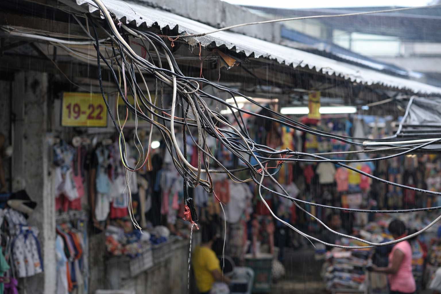 Loose and exposed electrical wires pose safety risk to vendors and customers.